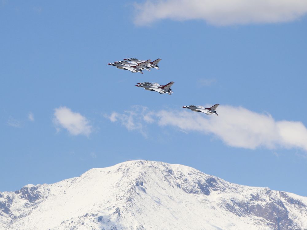 Thunderbirds flying over Pikes Peak for the AFA graduation
