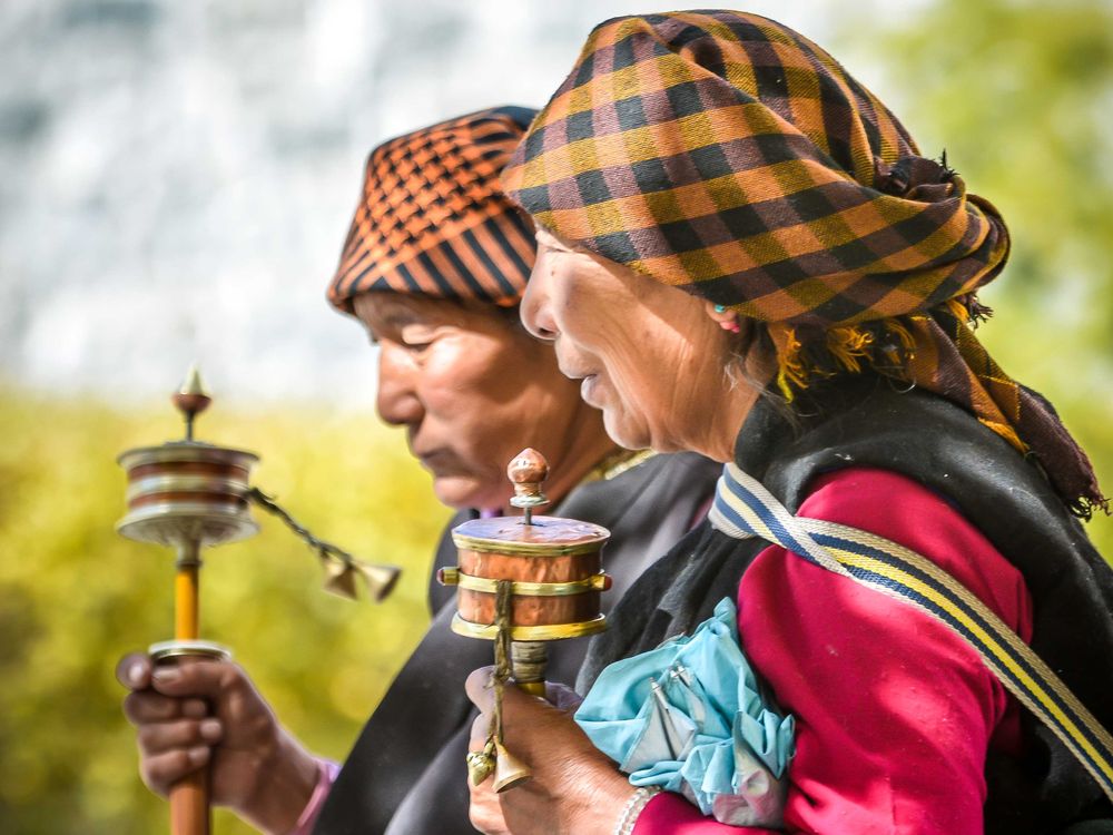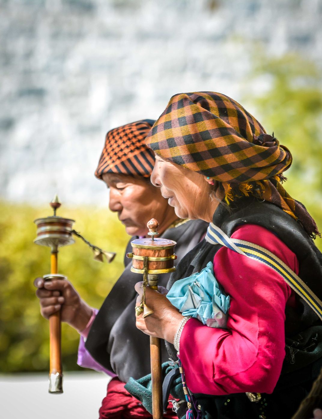 Tibetan woman walking on the grounds of the Potala Palace praying all day long.