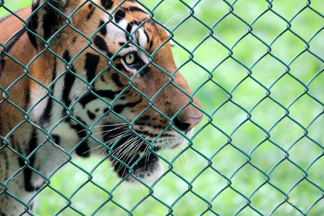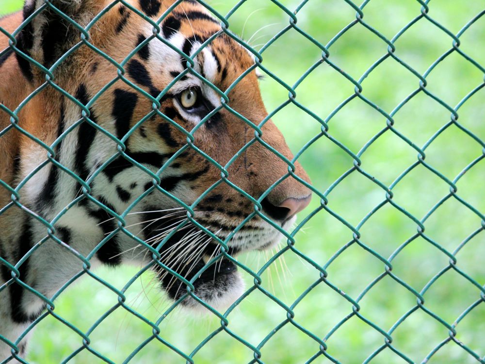 Tiger is very furious about the people outside the cage, his eyes were very sharp ,but his powers restricted inside a cage of iron bars.
