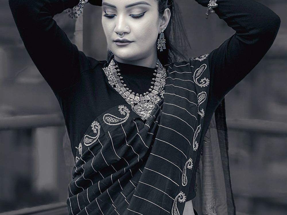 Draped in stories, stitched in silence— each thread a whisper from generations past. Black and white, yet full of color within.