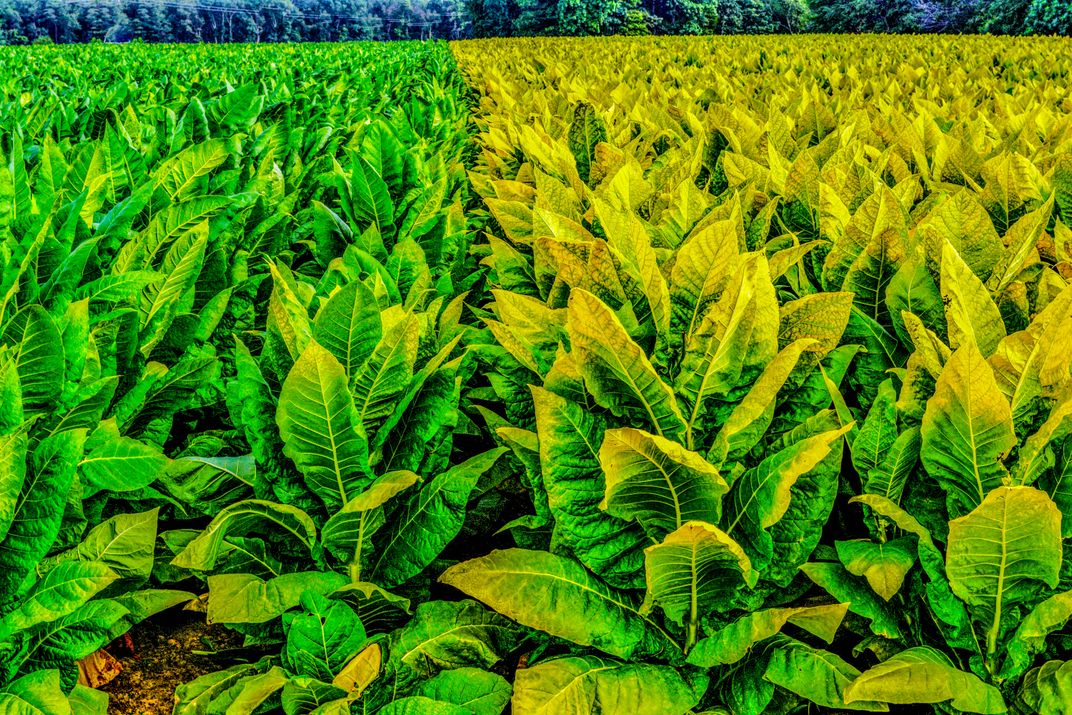 Two types of tobacco form a dividing line in this field of tobacco plants.