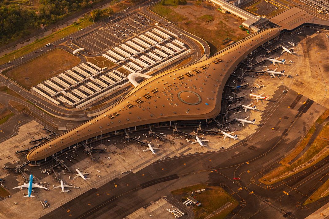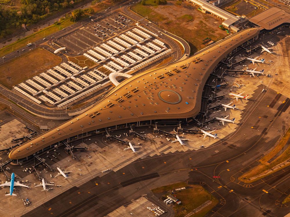 The new terminal at Tocumen international airport in Panama City, Panama, taken from a small plane.