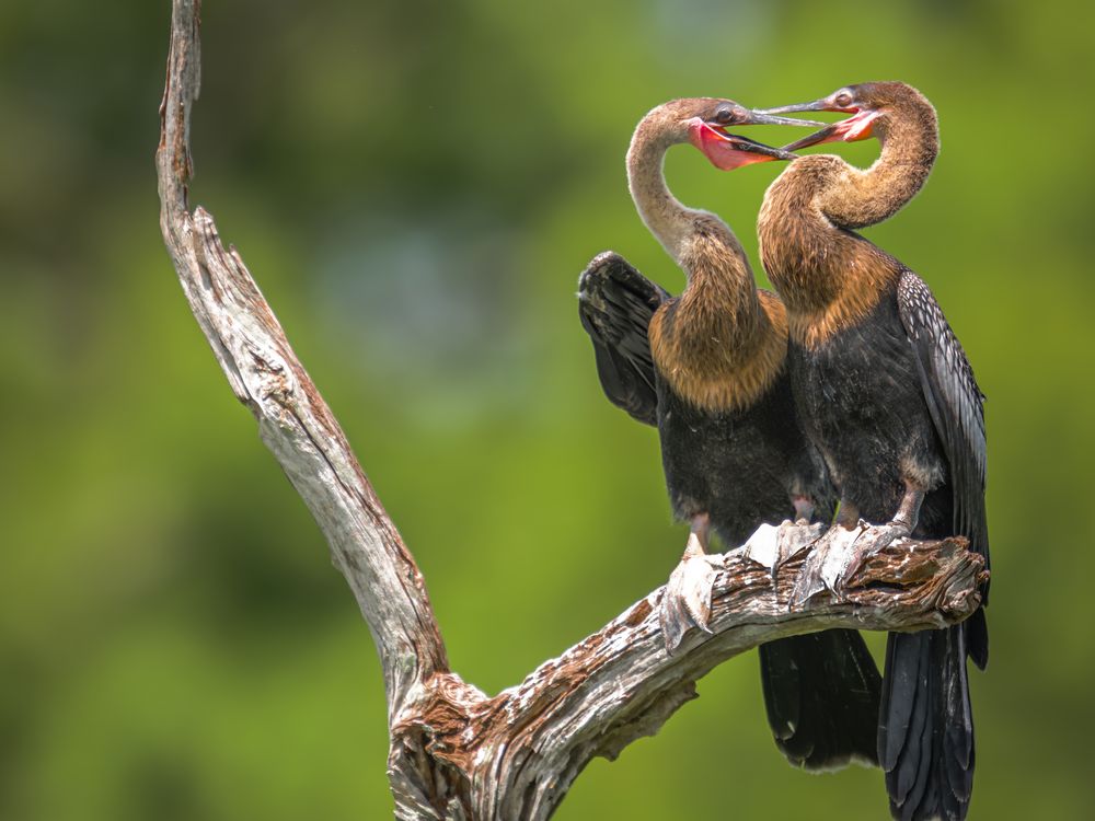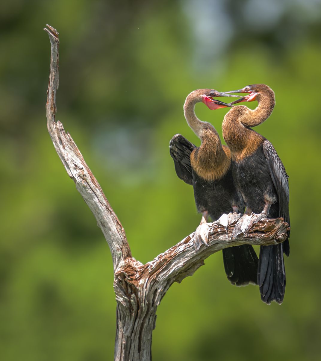 The shot shows two Anhingas (called Darters in Africa and Australia) the birds were apparently displaying a matting behavior. It was taken at the Orlando wetland in Florida.