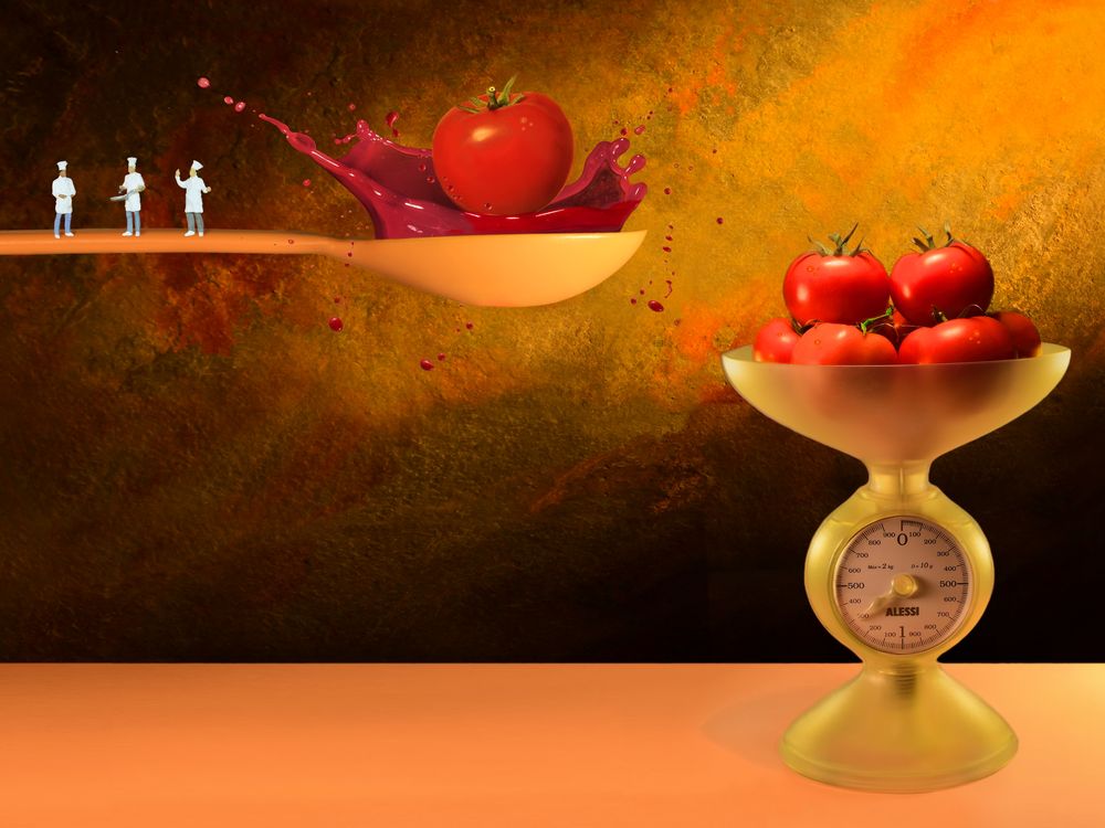 For the Assignment of Tomato Project, capture a surreal concept of miniature chefs prepare Tomato recipe still life