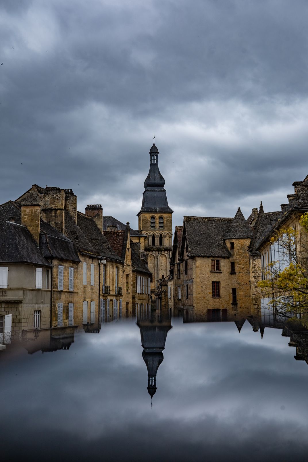 The photo was taken in Sarlat-la-Canéda, France, on a cloudy day as I strolled through town