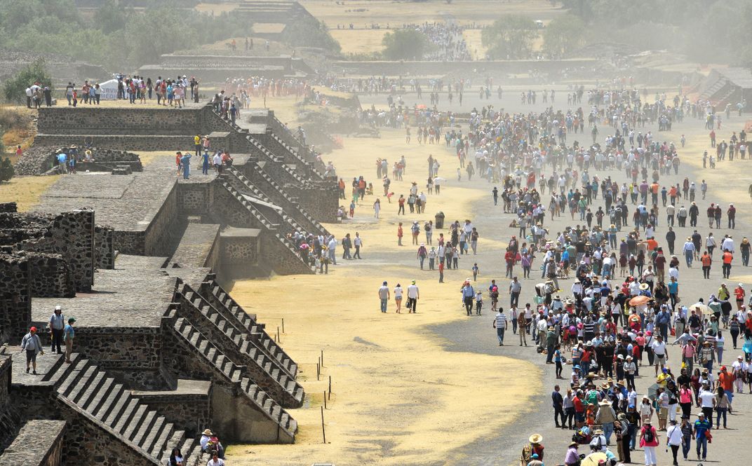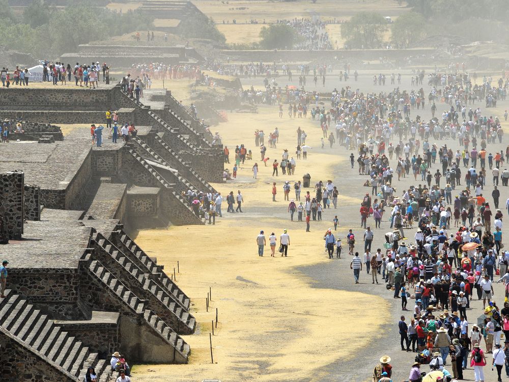 The photo shows the overcrowded with tourists Avenue of the Dead at Teotihuacan. During the Holy week before Easter hundreds of thousands of Mexicans are using the holidays to go out of the over crowded Mexico City. One of the popular destinations is the ancient Mesoamerican city of Teotihuacan with its pyramids.