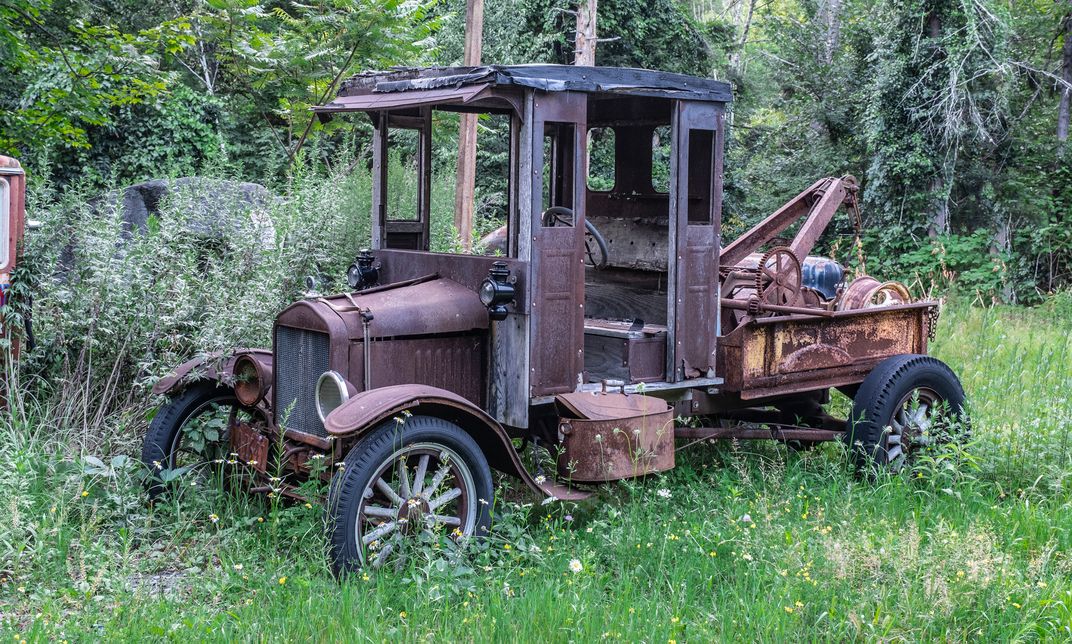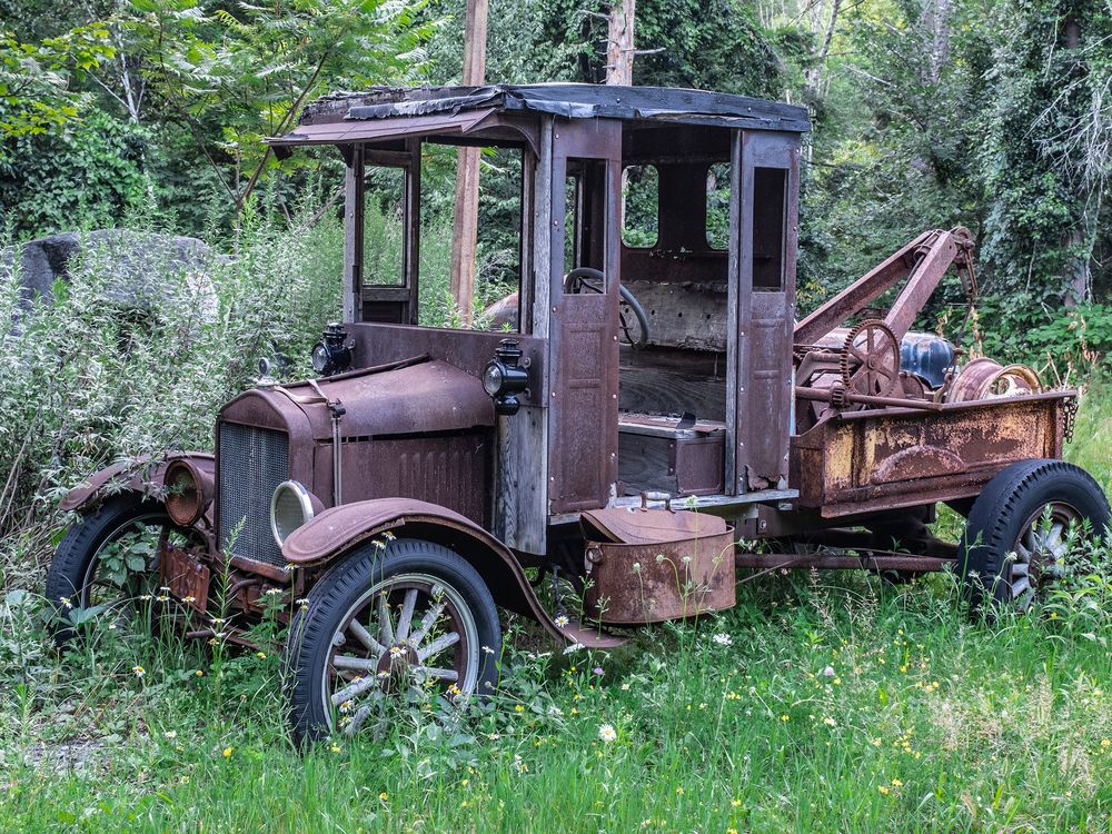 This old tow truck is at the site of a gas station that was relocated for the construction of a nearby dam.