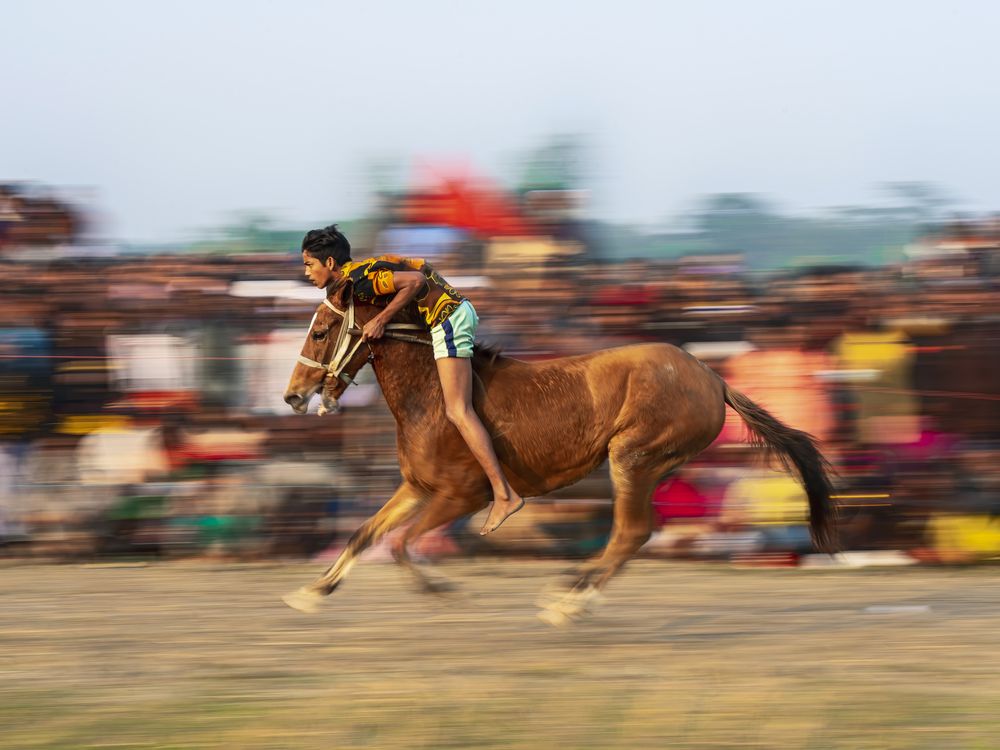 A young boy was riding a horse in a local traditional horse racing event. This type of race arranged as a part of culture for decades in rural Bangladesh. Usually the organizer convert the vacant paddy field to the racing track for that day! Most of the time a village fair also organized surrounding that racing track and thousands of people gathered there to enjoy the colorful rural sporting event.