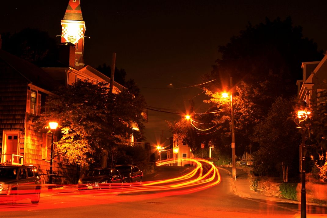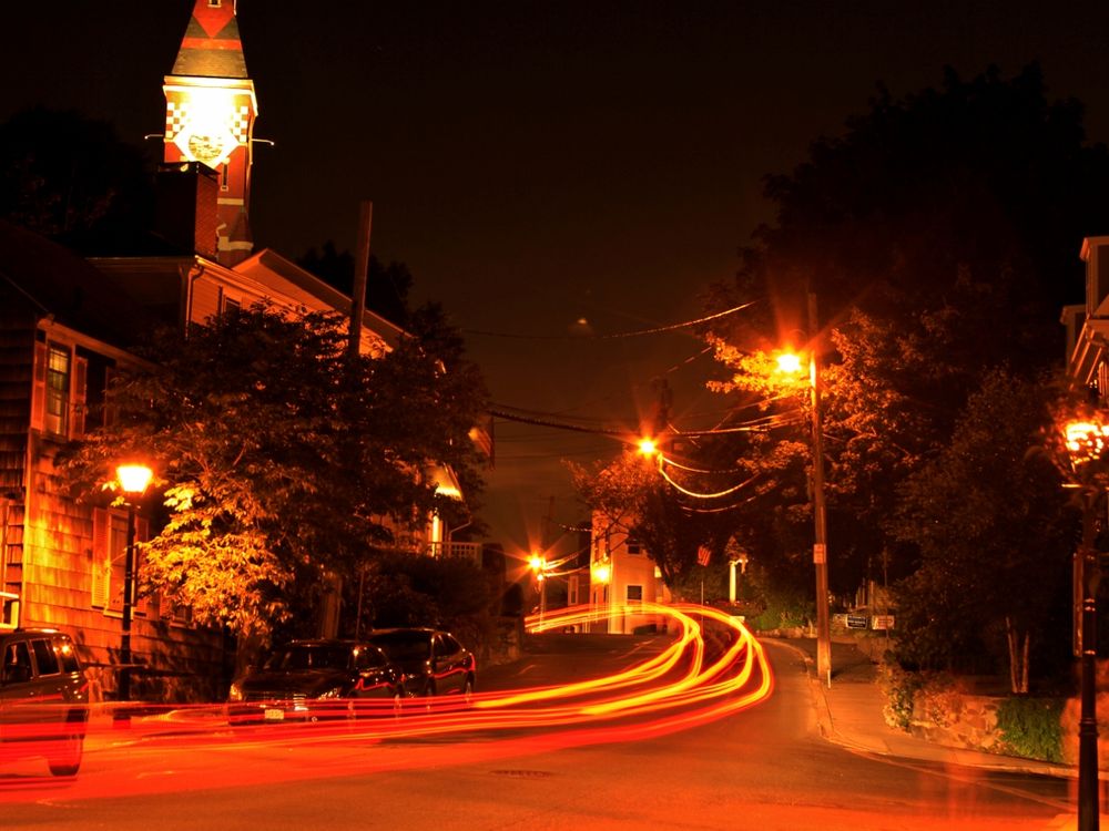 "Trailing Lights" I capture this picture in Marble Ma.and I used a slow shutter speed in order to capture the car lights trailing though the street.
