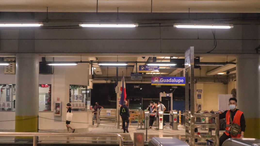 Train station at night.