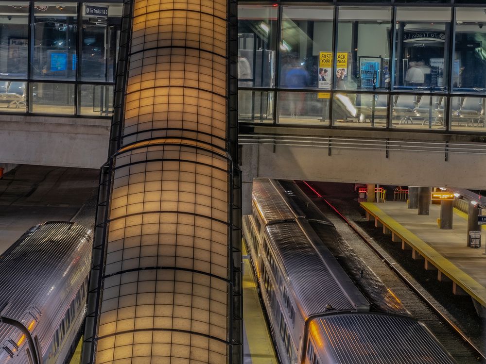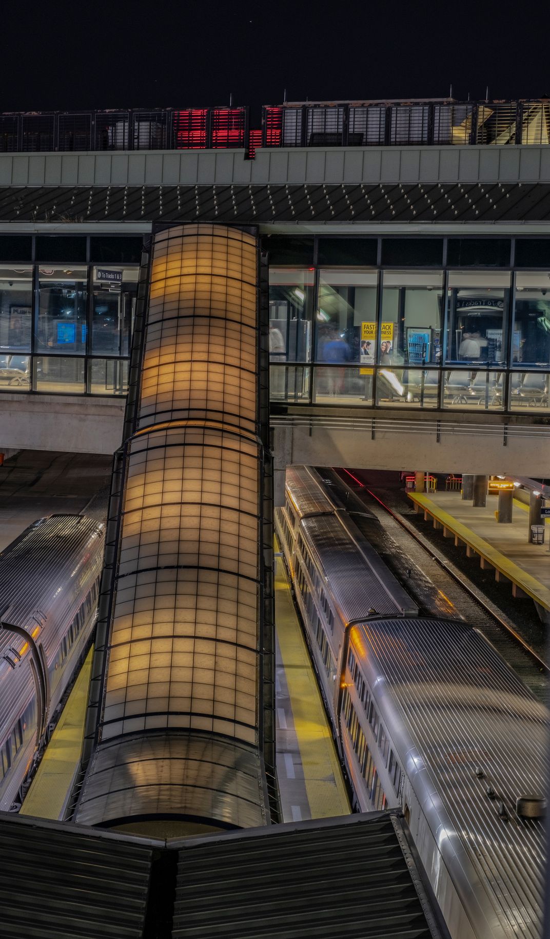 This is a shot of the stairs that go from the train station down to the loading platform.