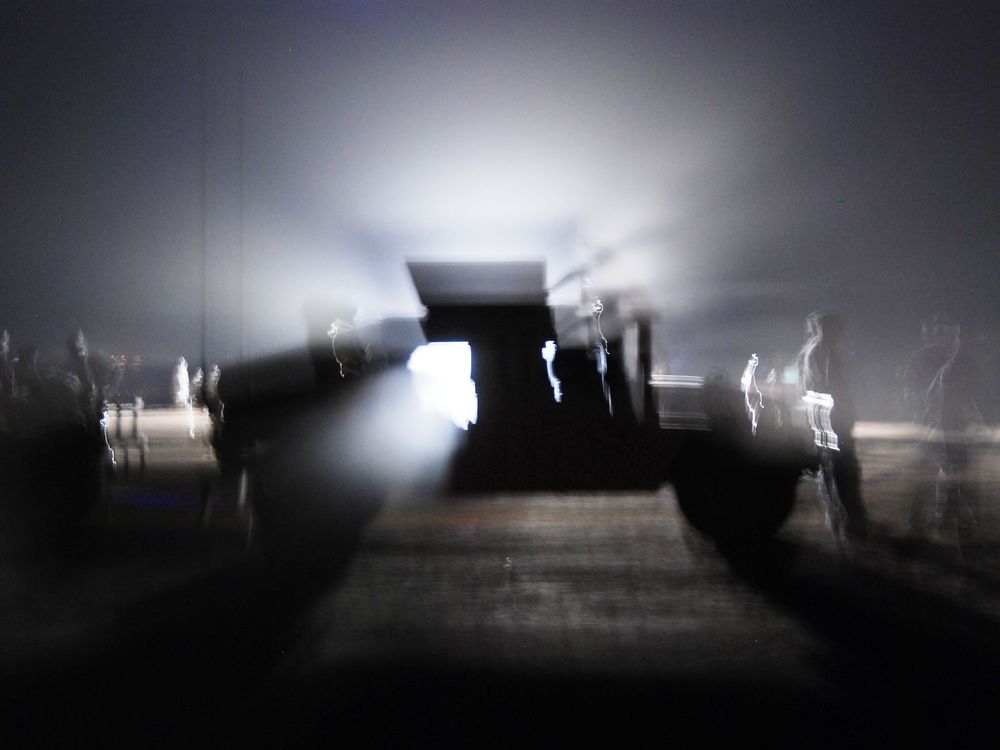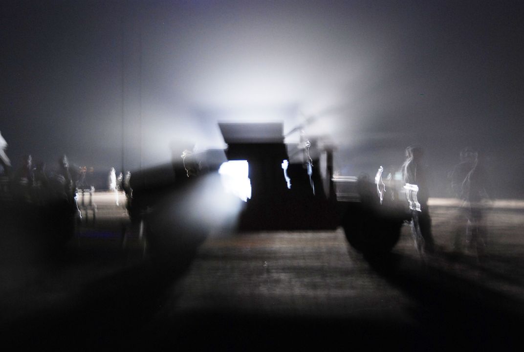 Training Never Stops, not even at night in a dust storm. My fellow soldiers of my Military Police Company in training for Deployment to Afghanistan.