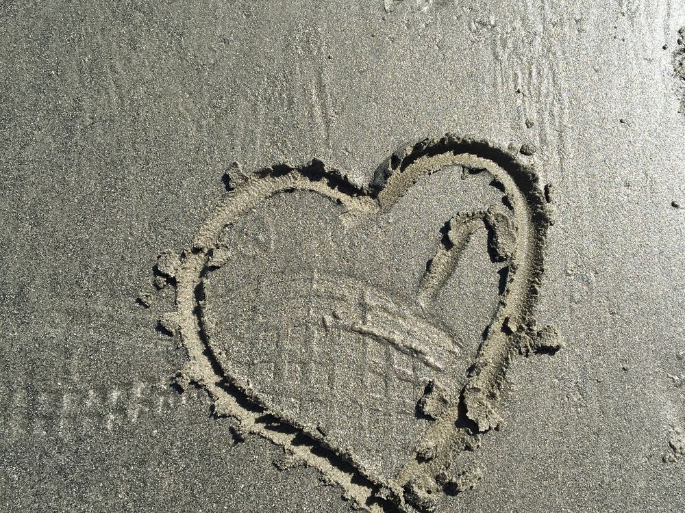 The lone heart drawn in the sand was unintentionally bruised by someone walking on the beach.
