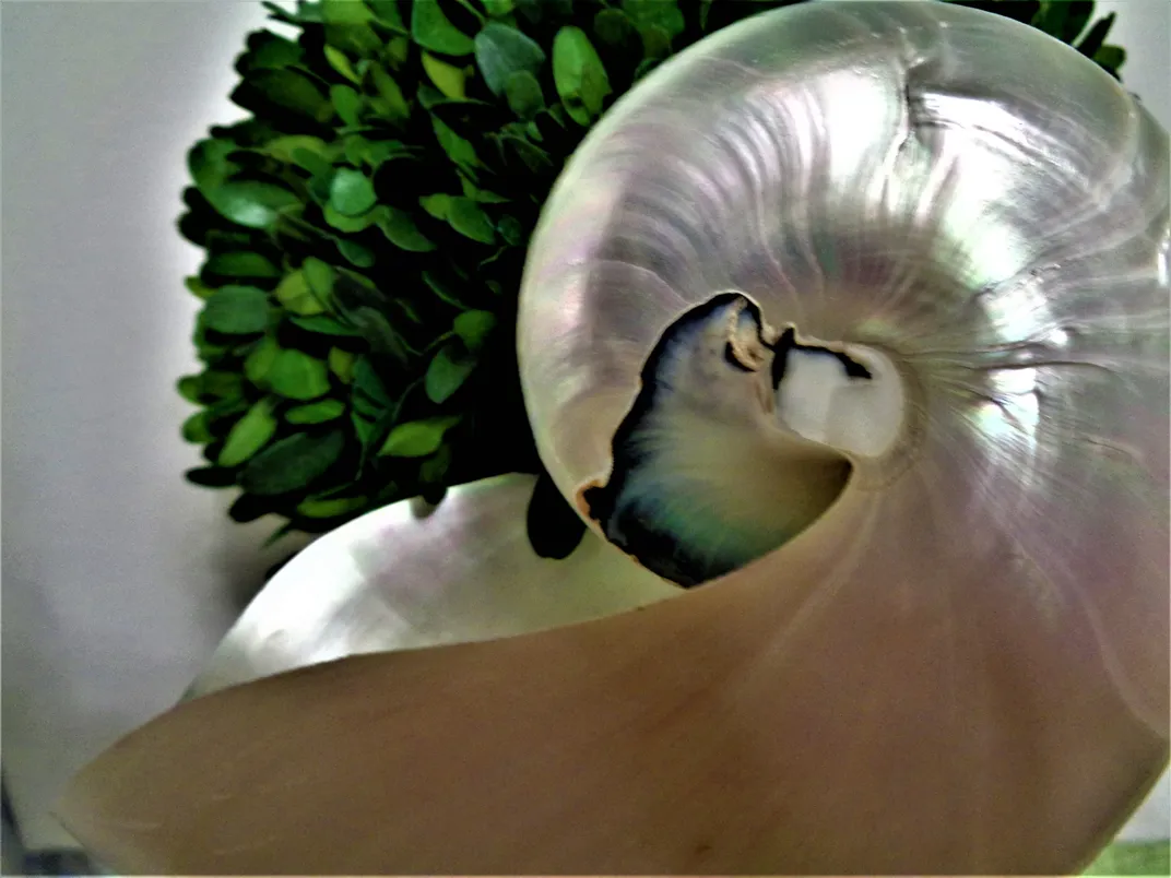 This image is of a seashell of irridescent coloring, a wonder of the sea.
