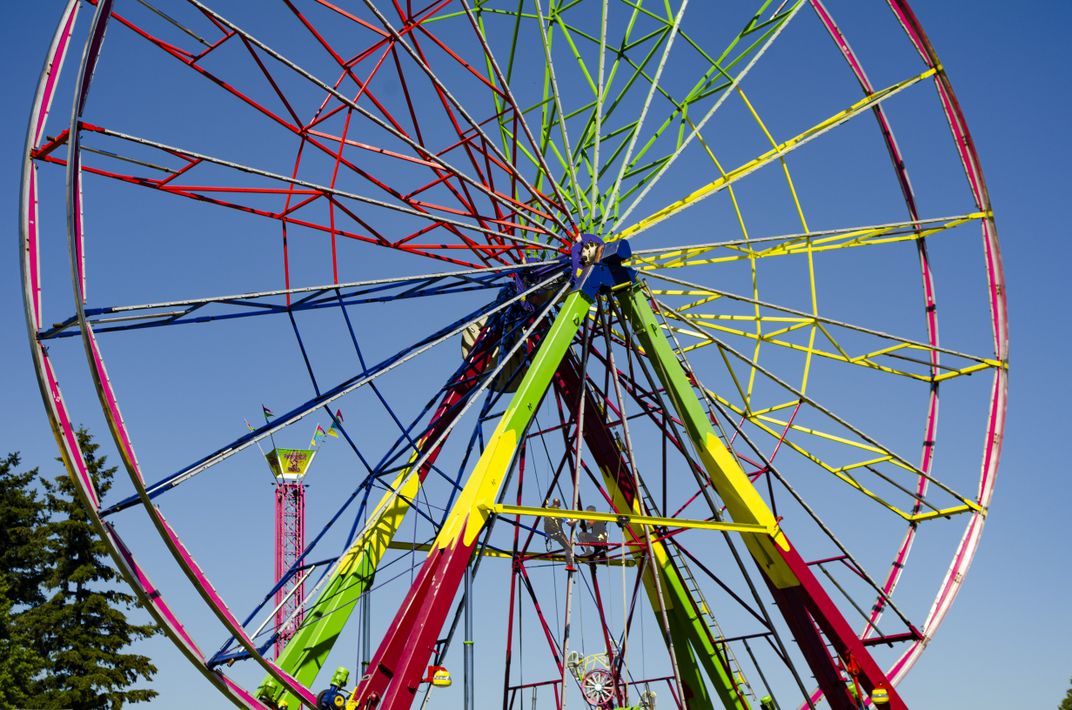 Traveling Carnival Fair Amusements Crew Assembling a Ferris Wheel
