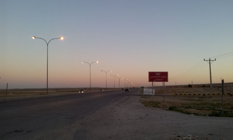Travelling through the roads of the Jordan lands. Sunset. Empty roads. Full moon.