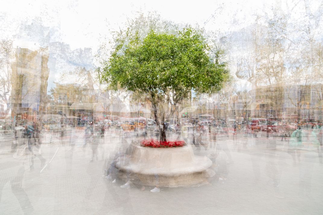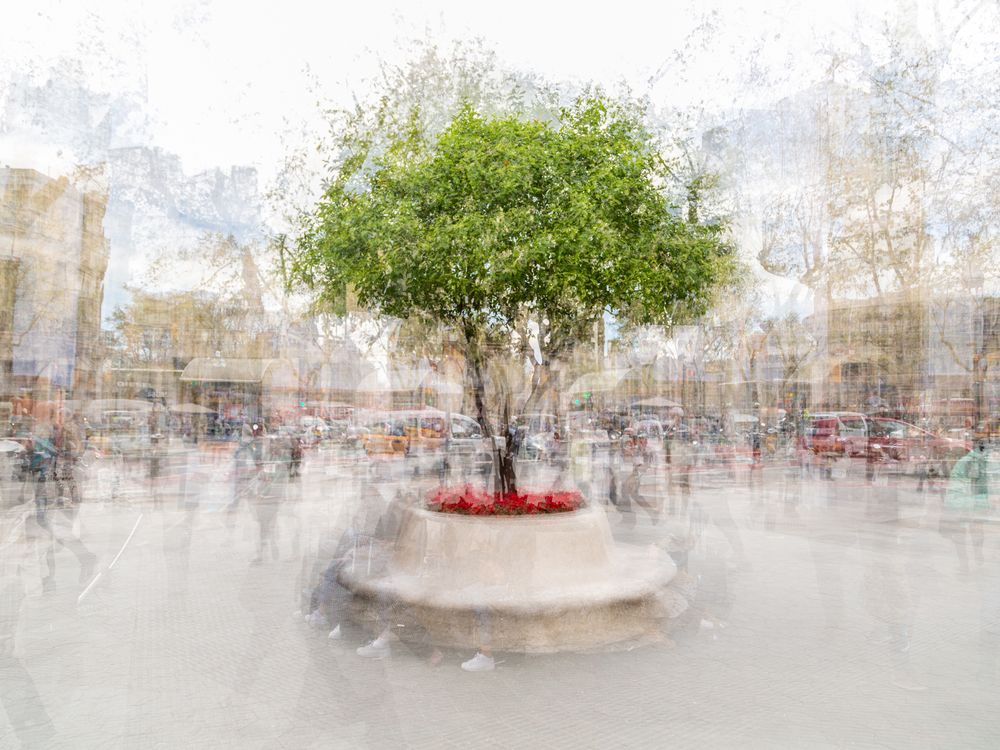 Complete Existence of this tree in a Barcelona street. Multiple exposure consisting of 9 images from every angle of the tree.