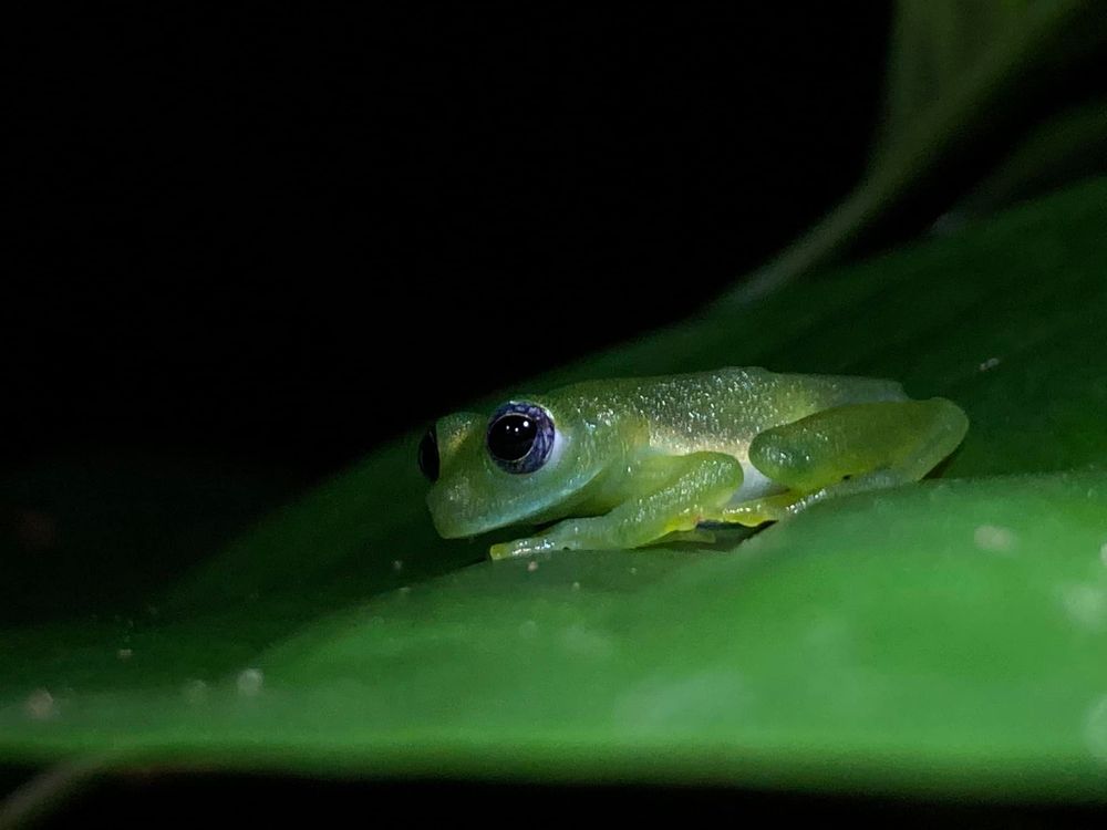 Night sparkles" While hiking in the jungle at night in Costa Rica, we found this fellow chilling quietly on a leaf. He tries to blend in, but like with many people, his inner sparkle comes through despite his trying to remain low-key.