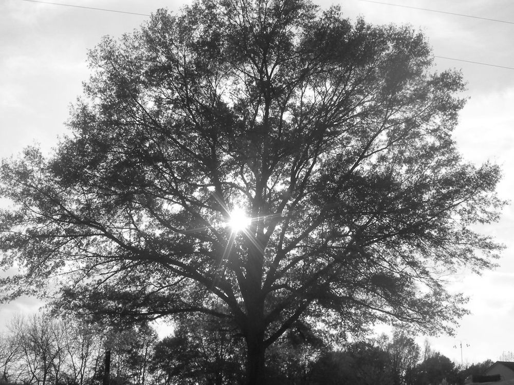 Tree with sun shining through it