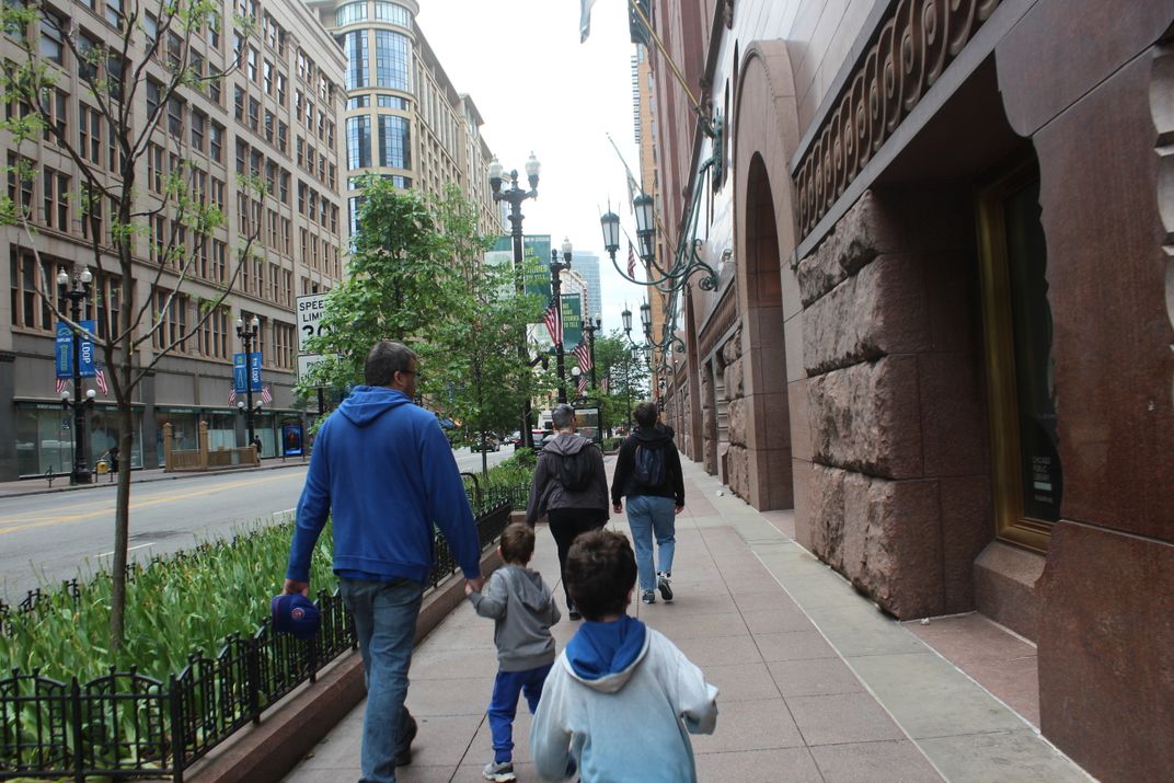 Downtown Chicago by the Harold Washington library. My husband, 2 sons and I took a cta train to downtown to see the beautiful Harold Washington library.