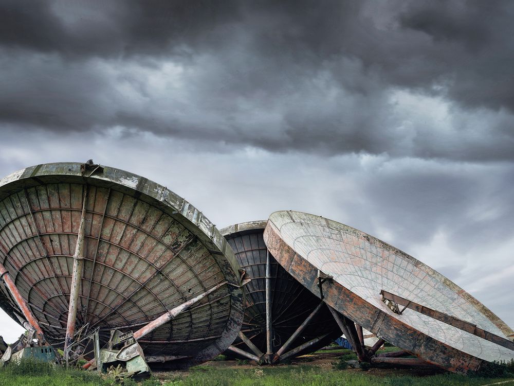 Lying in a field in Lincolnshire are these four tropospheric scatter dishes, a left over from a NATO base that was located here when it was known as RAF Stenigot. Signals were bounced off of the troposphere and over the horizion to the next station. There were a network of them around Europe.