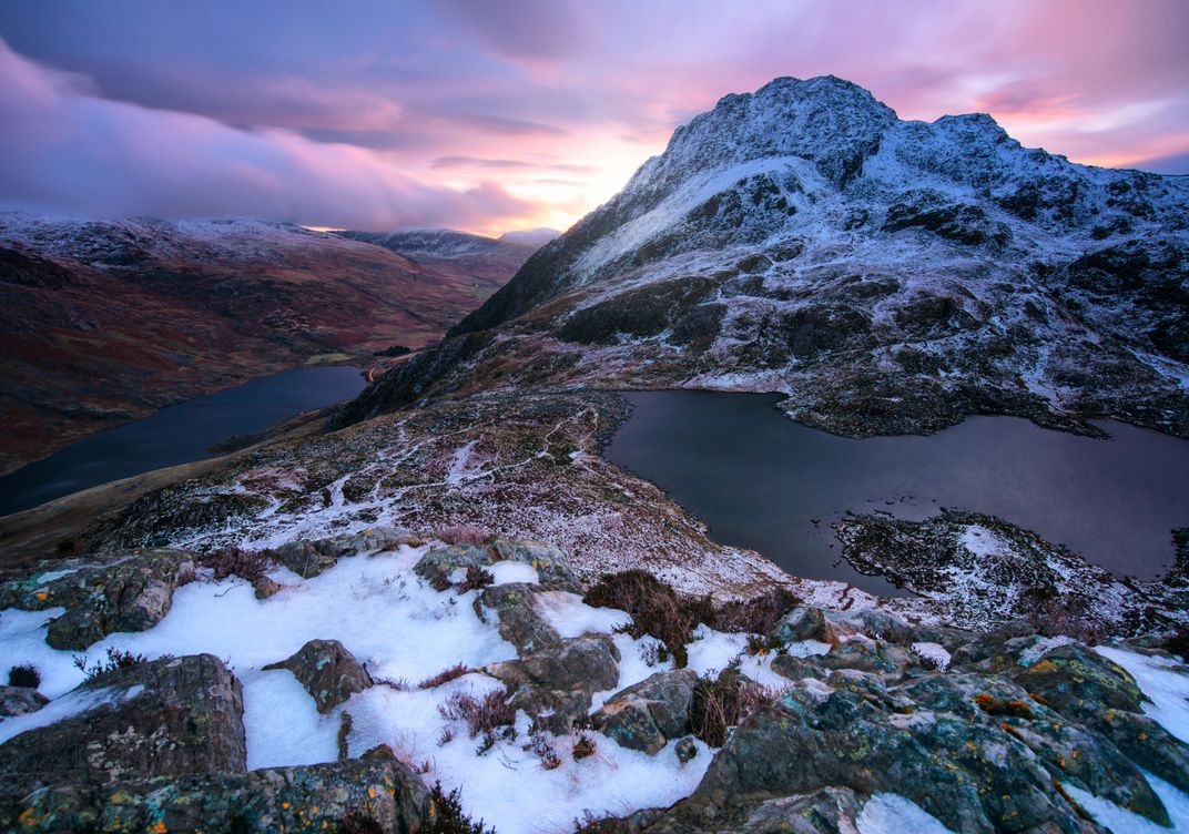 A beautiful morning high up in the Ogwen Valley. I scrambled up in the pitch black to a spot I have visited a couple of times above llyn Bochlwyd. I waited for several hours in freezing conditions, the sun started to appear behind the towering Tryfan. Pinks and purples lit the valley, one of the most beautiful sunrises I have ever seen. I’m glad I witnessed it and I am pleased to share it with other people. The area is famous for its amazing rock formations. I come here not just for the amazing photo opportunities but to also see the rare Snowdon lily it can be found high on the cliffs, this flower is unique to these isolated parts of Snowdonia and may not survive if global warming continues.