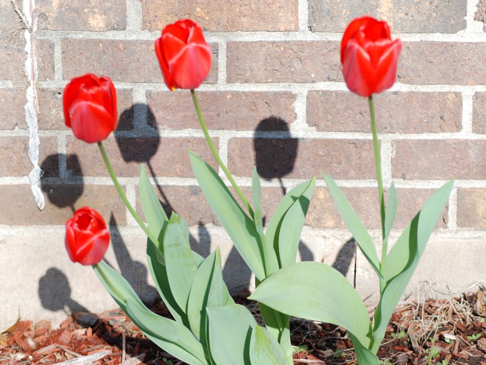 I think of this as sort of a double image--the same tulips in color and in silhouette.