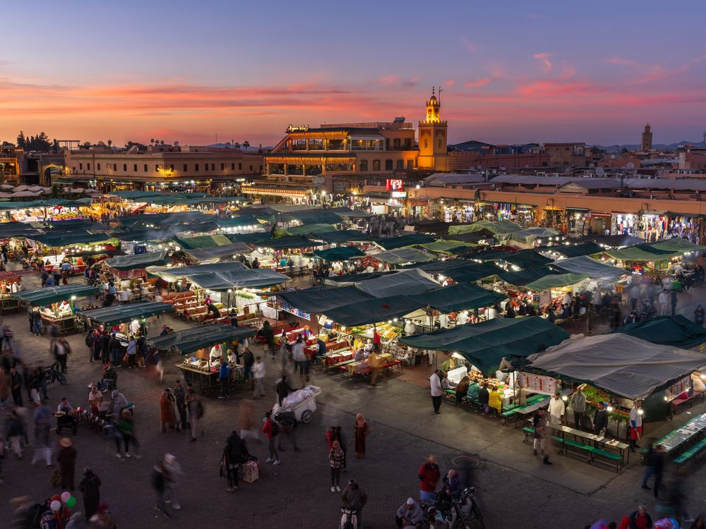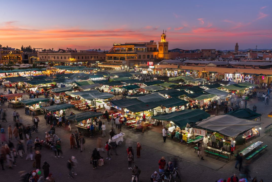 As the sun sets over Marrakech, Jemaa el-Fnaa comes alive with lights, aromas, and vibrant energy. A timeless marketplace where tradition meets the magic of dusk.