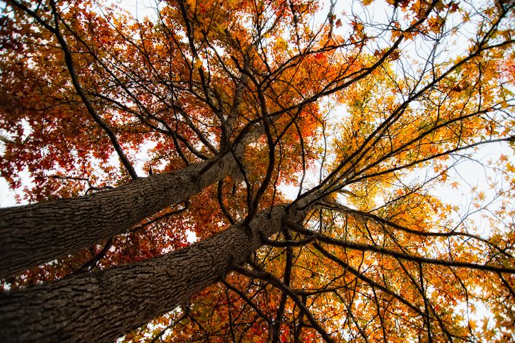 Twisted Trees. Theses two trees appeared to be entwined as they reach for the sky.