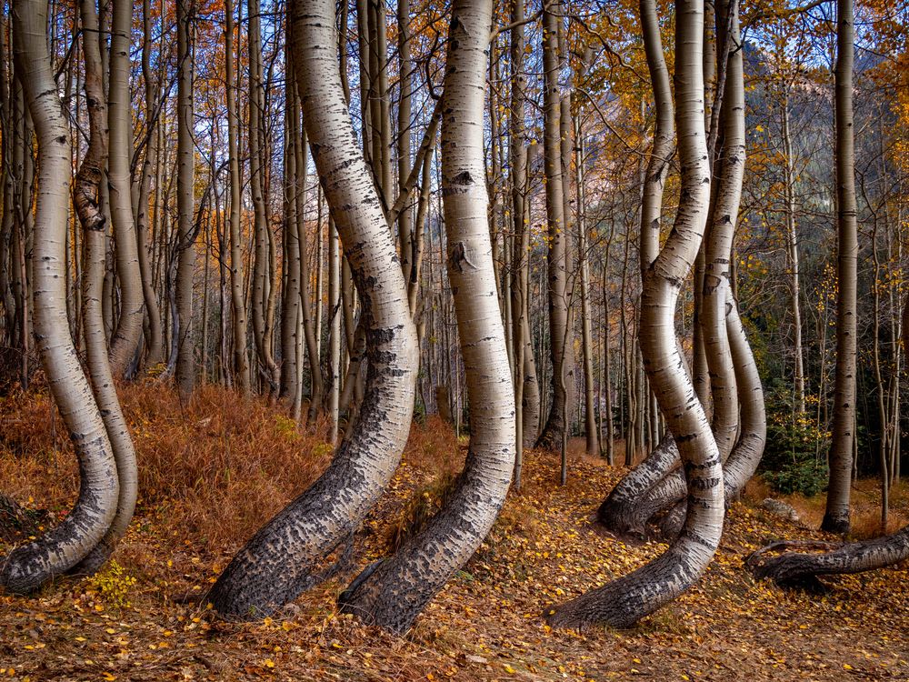 A fellow photographer friend of mine told me I should go take a look at these trees near Telluride, Colorado. As my husband and I were driving in the area, he proceeded to give us step by step directions to the spot. He had me drive down a gravel road, the look for a path leading into the woods. I followed all of his directions, and lo and behold, there they were! It was such an unusual sight to see.