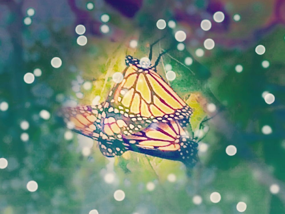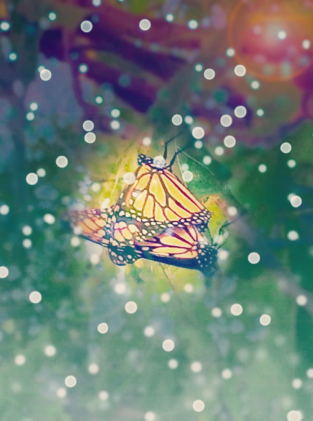 It's a picture of two butterflies resting on a tree branch after what seemed like an intimate encounter while flying