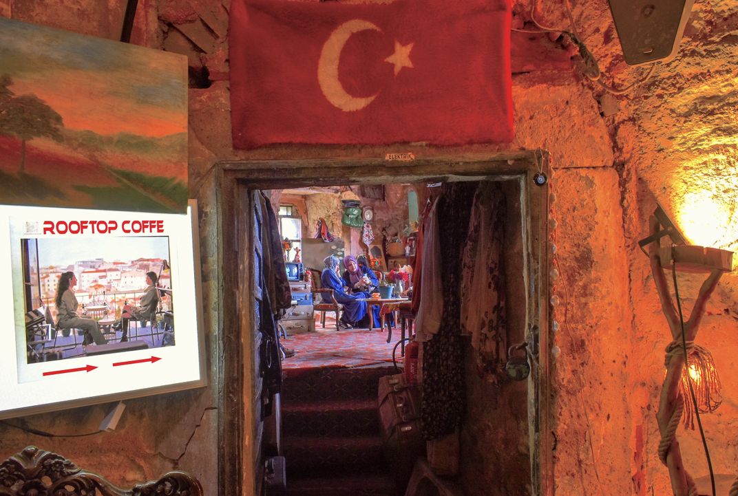 Two friends having tea in an old caravanserai