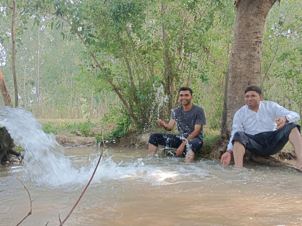 Two friends in the lap of natural vegetation and artificially extraction of ground water