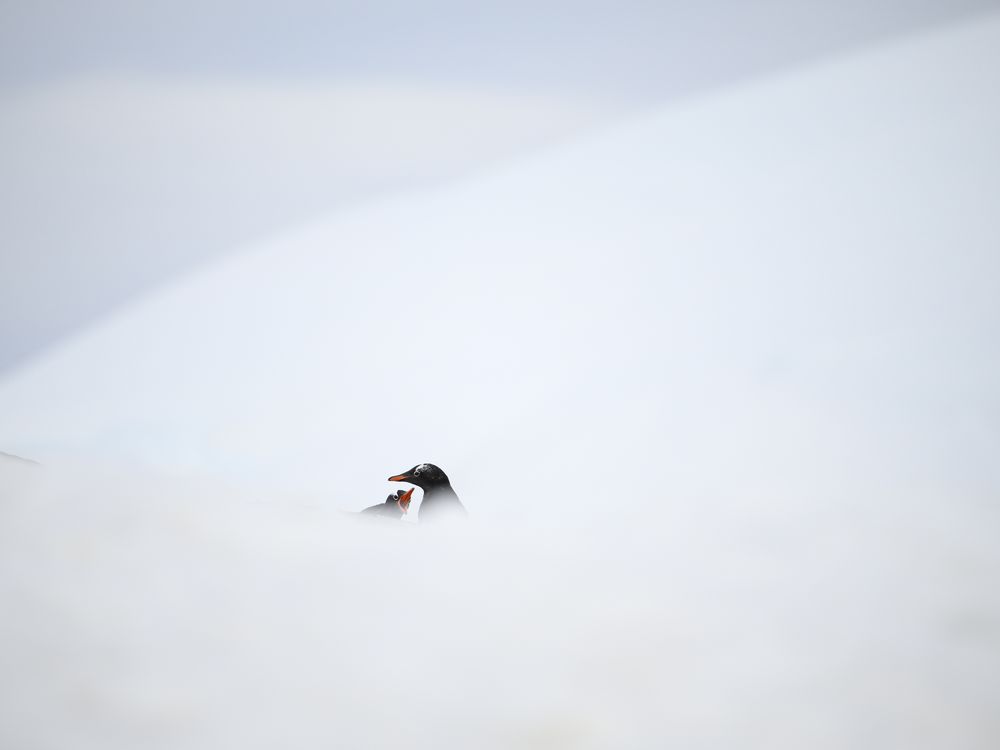 I have been visiting Antarctica for over a decade, working as a guide. Last year, during a landing in Mikkelsen Harbour, I selected an interesting scene. I framed my shot waiting for a solo penguin to walk down. After a few shots, two appeared, stopped and started an argument. Their expression was captivating, and made the shot.