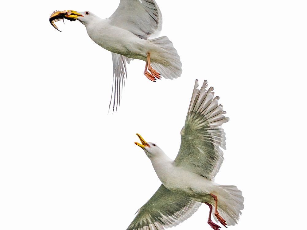 This shot was taken in the Hood Canal Washington state. I was actually there to shoot Bald eagles when these two Gulls flew by one in pursuit of the other for the fish he caught.