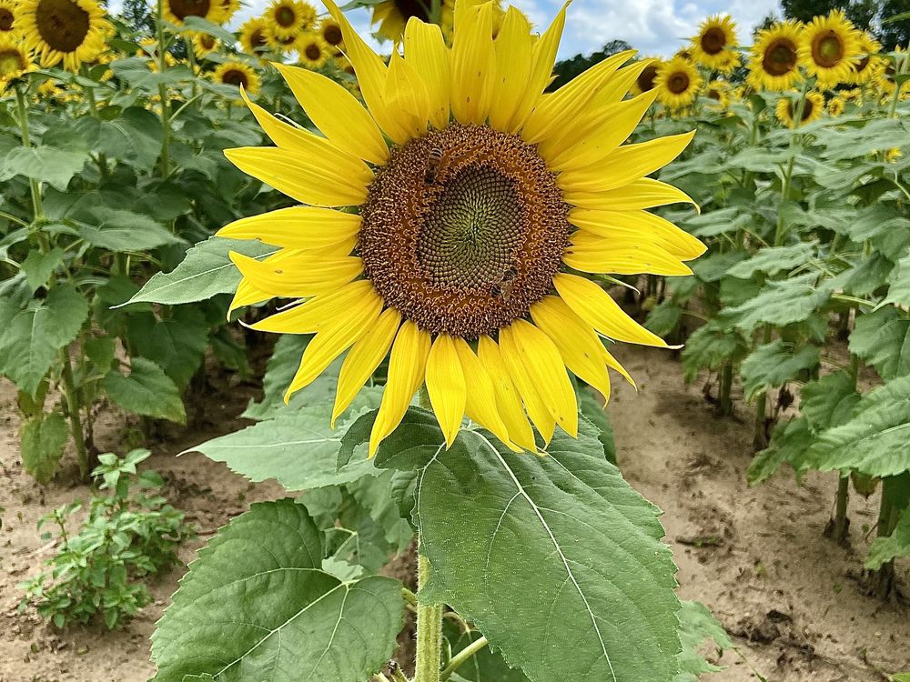 This photo was taken on a visit to a nearby Sunflower patch with my daughter , nephew and sister . I captured what I thought was just a Sunflower . Turned out to be two hard workers . No pun intended.