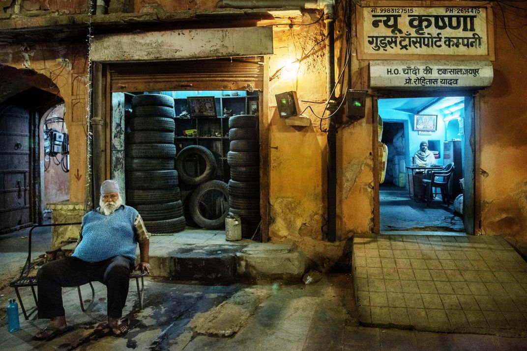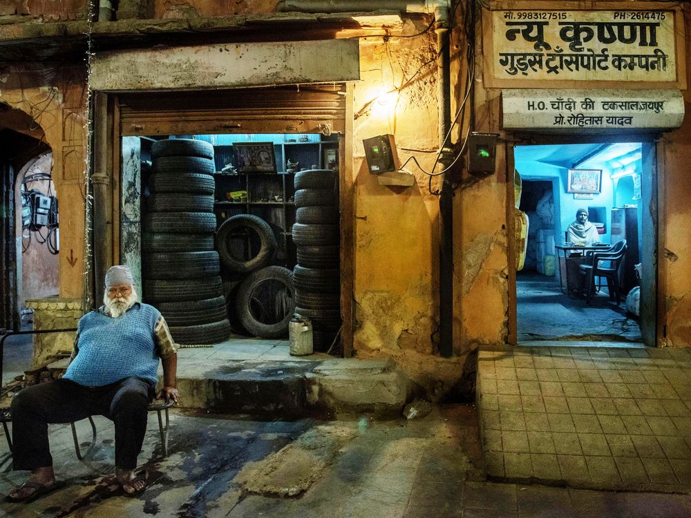 This image invites me into the worlds of these two men in a quiet and compelling way. The man on the left appears to have finished a hard day’s work, while the one on the right looks as if he is awaiting business. But it’s the balance of composition and colour that makes this image so memorable for me. The man’s blue tank top is echoed by the blue rectangle of light, and both are set against a backdrop of artificial orange.