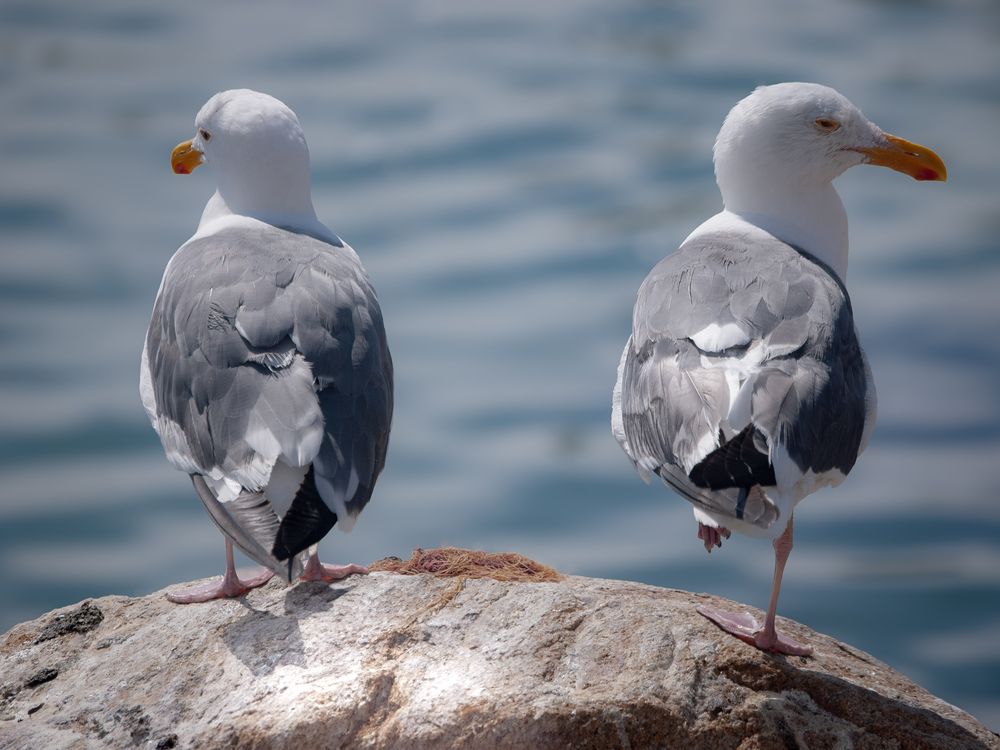 I was taking pictures of the seagulls at the beach when I noticed this pair. I was intrigued by their mostly-identical stances, only broken by one of the seagulls standing on one leg. Nothing appeared wrong with the leg that was tucked against its body; maybe the seagull just found the position comfortable. It remained in this stance for twenty minutes.