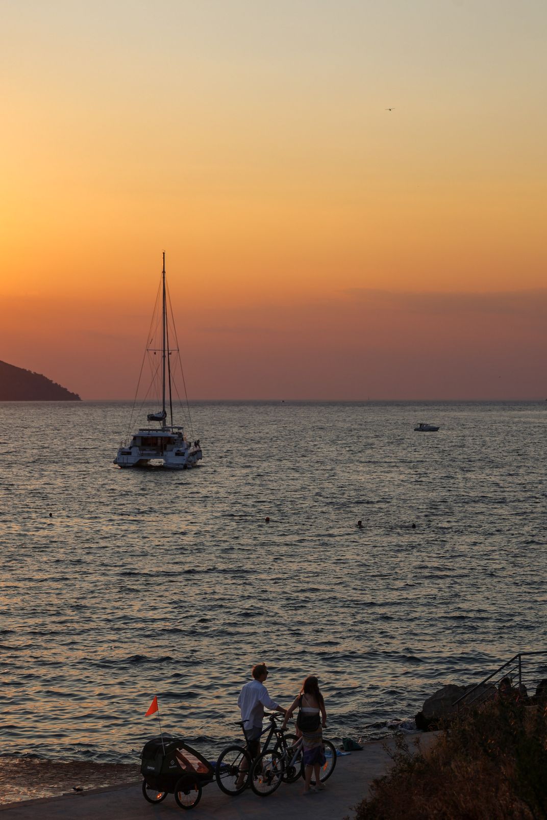 The fading light signals the day’s end, but the start of a shared impulse: returning home. I saw two paths on the water's edge: a catamaran sailing in from the sea and a couple with their bikes on the shore. Whether by boat or by wheels, everyone in this moment was moving towards the same simple goal—to find comfort and connection with the people they love.