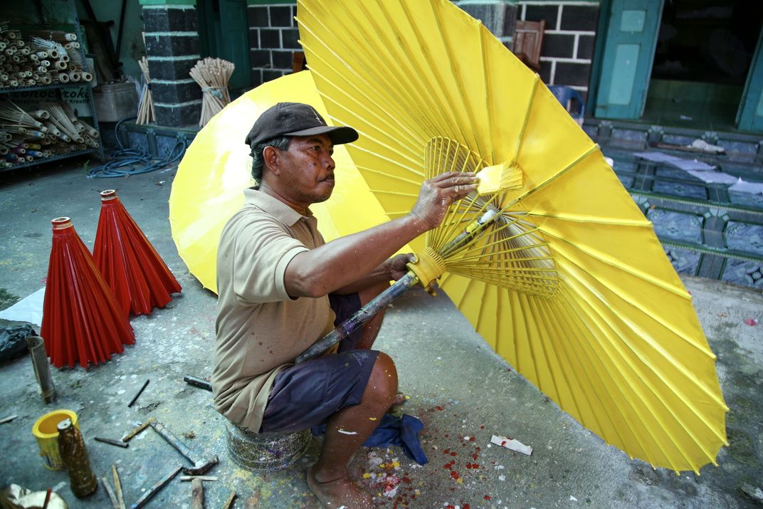 Traditional umbrella workshop in Juwiring, Solo, Indonesia