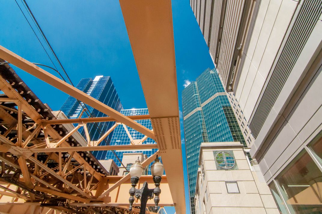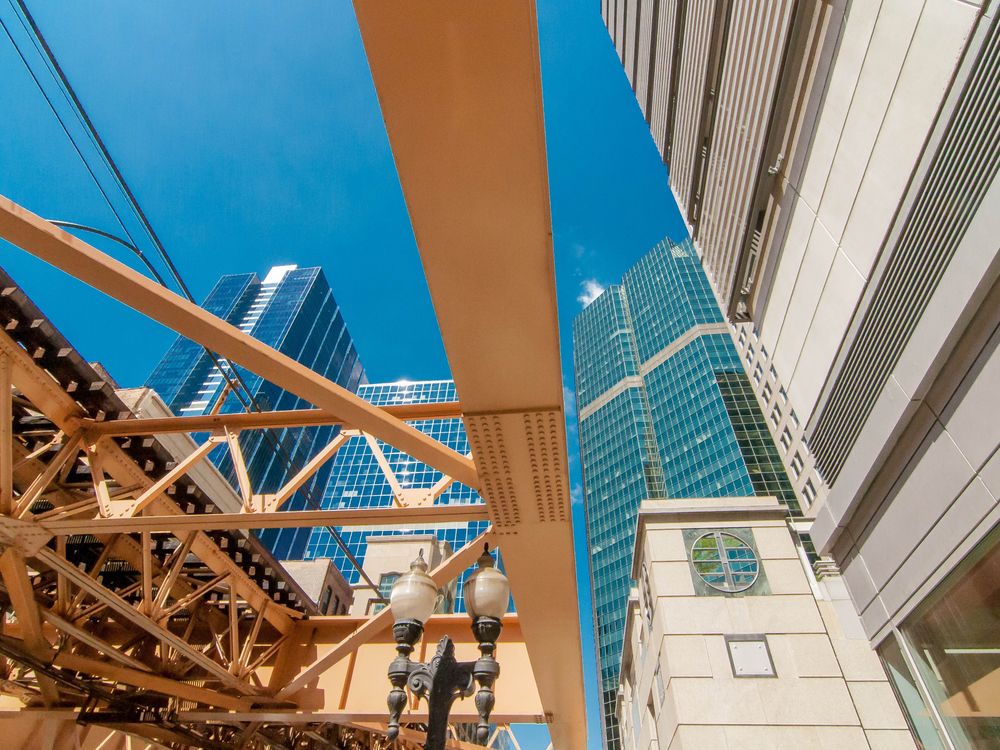 Walking under the El in Chicago can connote a lot of associations. Culturally, from the Blues Brothers movies to Stuart Dybek stories, and personally from your childhood trips to the big city with your parents, and later with your friends and solo. But there is also the structure itself. The physicality of it and how it fits into its surroundings (more concrete and metal), free of any cultural or personal associations. At this particular spot, it struck me how strongly the visual elements of the structure and its surroundings harmonized.