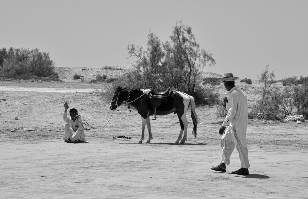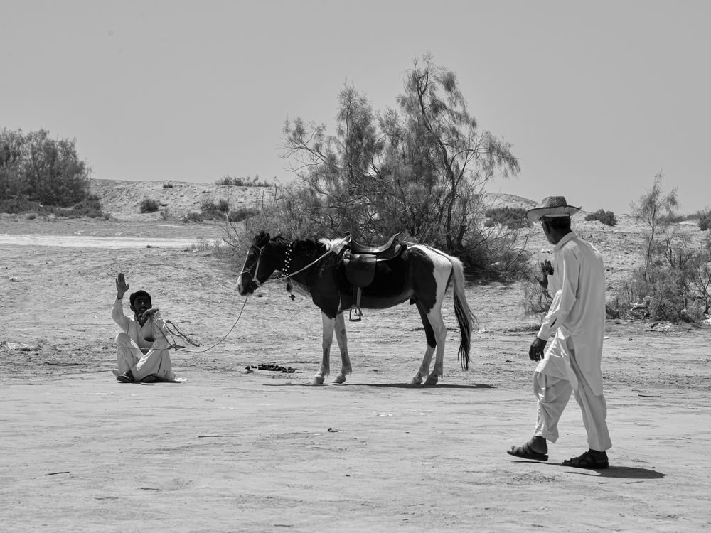 A man was sitting with his horse in the bright sunlight, waiting! When suddenly, as this man passed by, they greeted each other, expressing their happiness for each other.