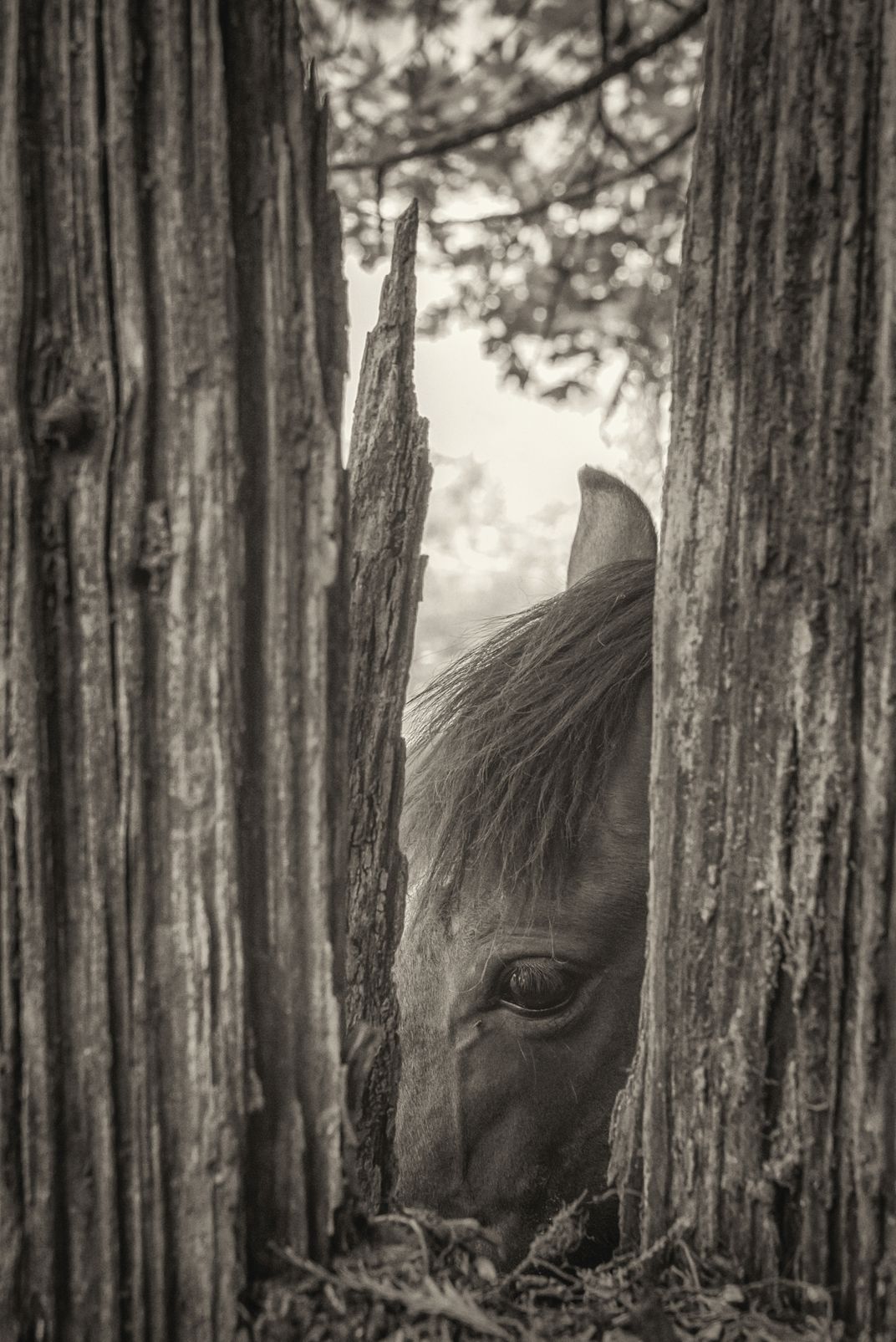My experience as a zookeeper taught me a lot about animal behaviors. I’ve been photographing a free-ranging herd of Welsh ponies for 11 years. They've accepted me, in that they ignore my presence and reveal some of their world. I join them as they gather close to each other under the old cedars. Their behavior sometimes shows me "darker" moments which I try not to anthropomorphize. I open to whatever happens, including those "peek-a-boo" moments.