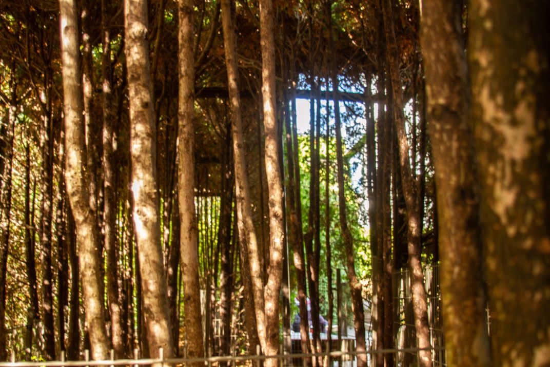 Millennium Park, Chicago, has fenced areas that are densely populated with trees.