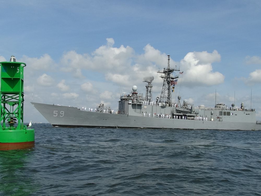 This is one of a few of my photos while on water of the final deployment of this class of US Navy Ship. This is the return of the USS Kauffman (FFG-59) as it entered the Elizabeth River en route home to Naval Station Norfolk. No other on the water pics exist from the this perspective and will ever again! Ship and class of ship will be decommissioned!