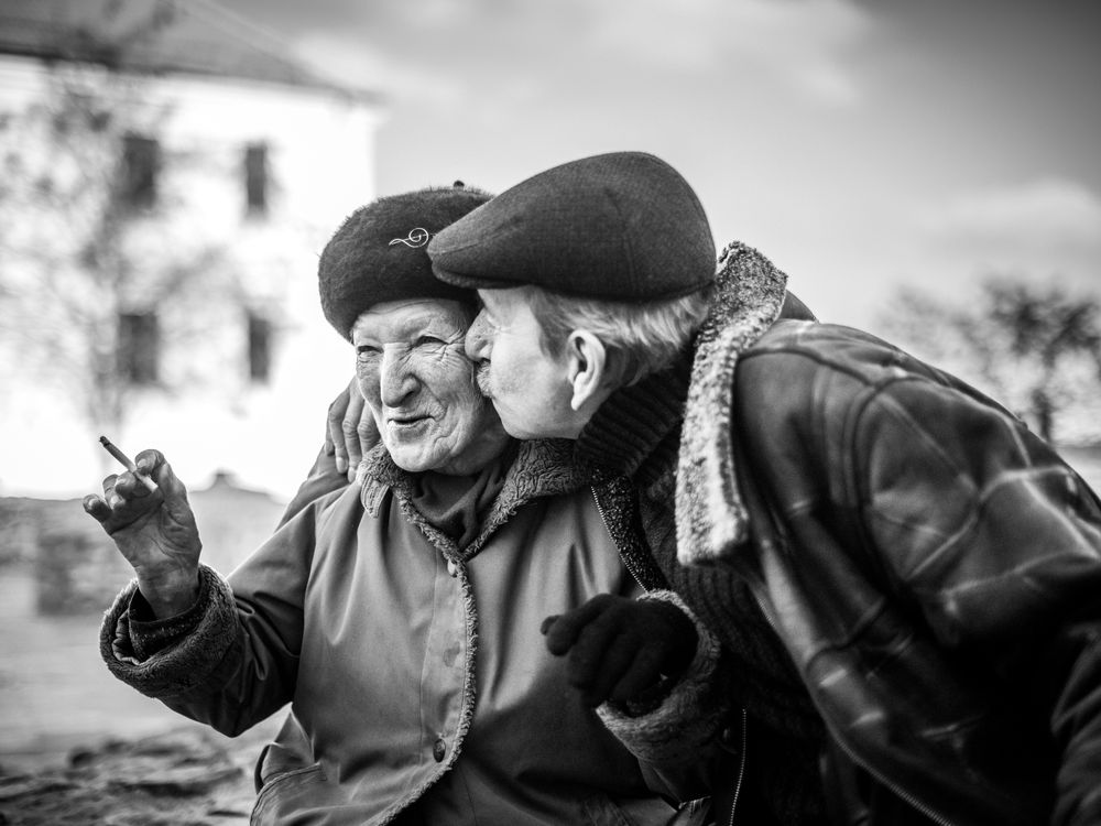 Authentic Valentine's Day in the Old Town of Lublin, going with my wife to film to the cinema on the way, I noticed this lovely couple from photos who said that love and affection is never late