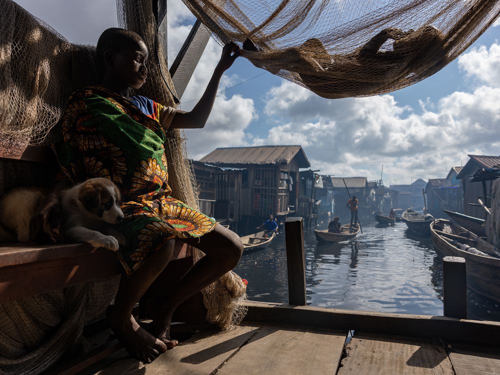 A young girl watches over her little brother, who sleeps peacefully in a fishing net turned into a cradle. Their floating home, like many others scattered across the Makoko Lagoon, rests suspended between water and sky, between dreams and survival. Despite the polluted waters and the challenges of daily life, life here carries on, guided by a deep sense of family and community. Makoko is known as the world’s largest floating settlement, home to more than two hundred thousand people who each day seek balance between tradition and hope.