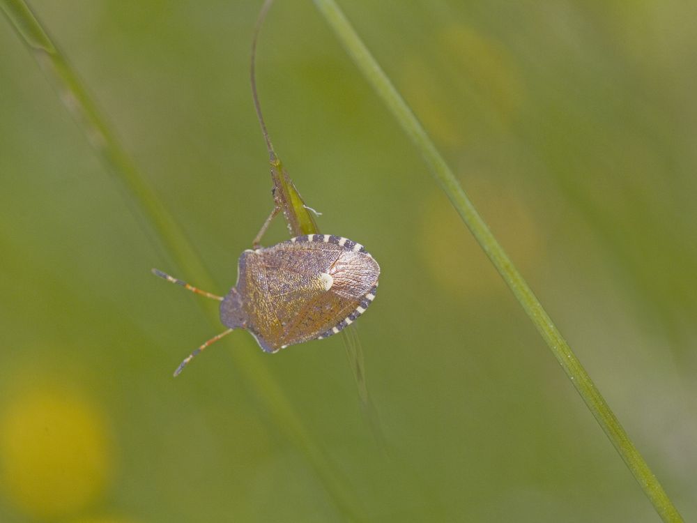 Vernal Shieldbug, Peribalus strictus. Shieldbug was glinting gold speck in dense grass. Relearning to walk, hold camera and shoot macro again after spine injury and surgery November 2020.