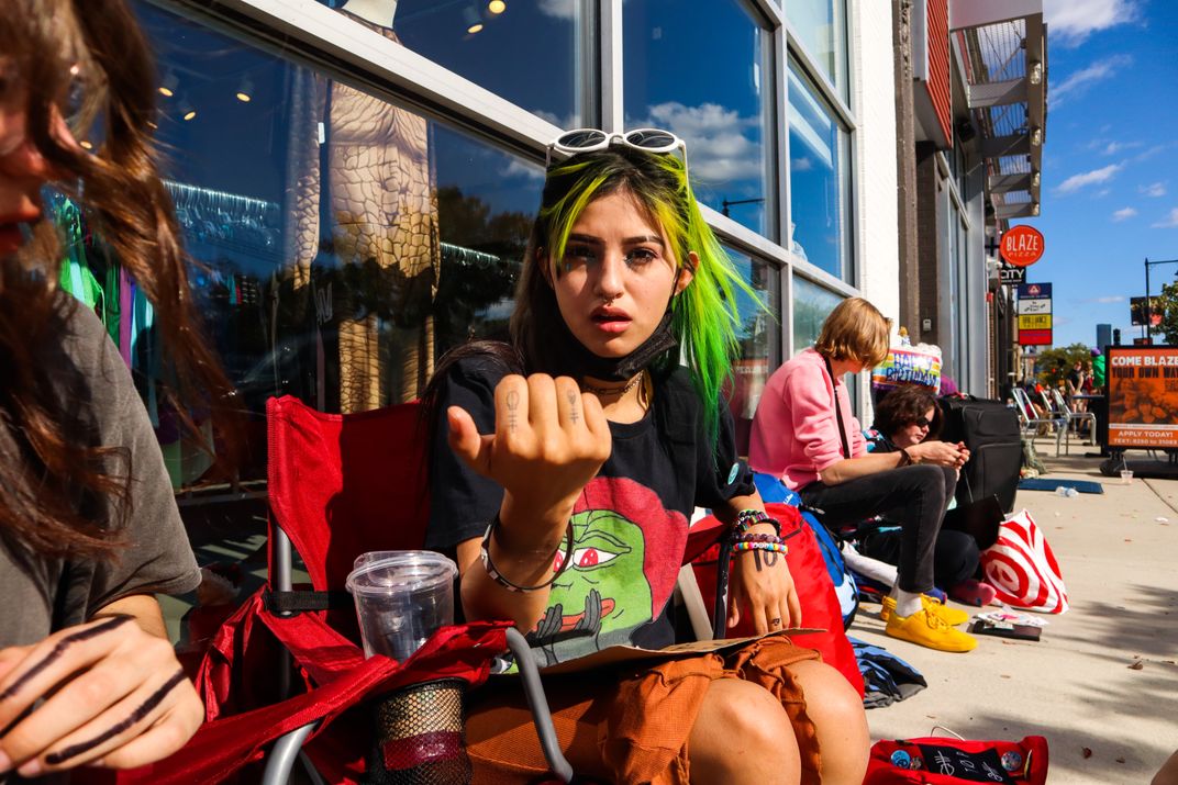 From 14th to 18th of October 2021, fans of Twenty-One Pilots camped out on Boston University's campus. Twenty-One Pilots is an American band formed by Tyler Joseph, along with Nick Thomas and Chris Salih ( both of them left the band around 2011), as well as the drummer Josh Dun in 2009. The duo is best known for their single "Stressed Out" as well as " Ride". The duo, Tyler Joseph and Josh Dun won the 59th Grammy in 2017. This is Veronica Valentine, and she is from the Washington Seattle area. She is showing her twenty-one pilots tattoo on her hand. She talked about how the band encouraged her while growing up. Veronica shared how much she appreciates the band in a way that they are both down to earth, and focus their music on mental health awareness. "I was so surprised when they dropped both of their pants during their winning speech of Grammy", says Veronica, " They are so cool. They did it because they promised each other if they ever won a Grammy, they would drop their pants with each other, and they really did it!"