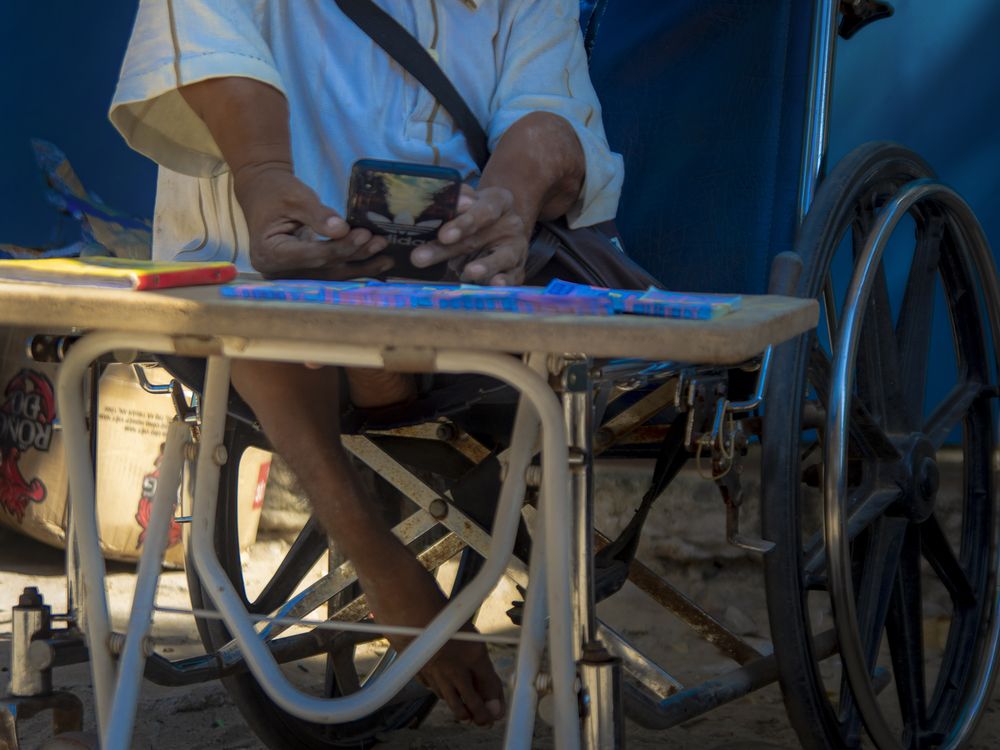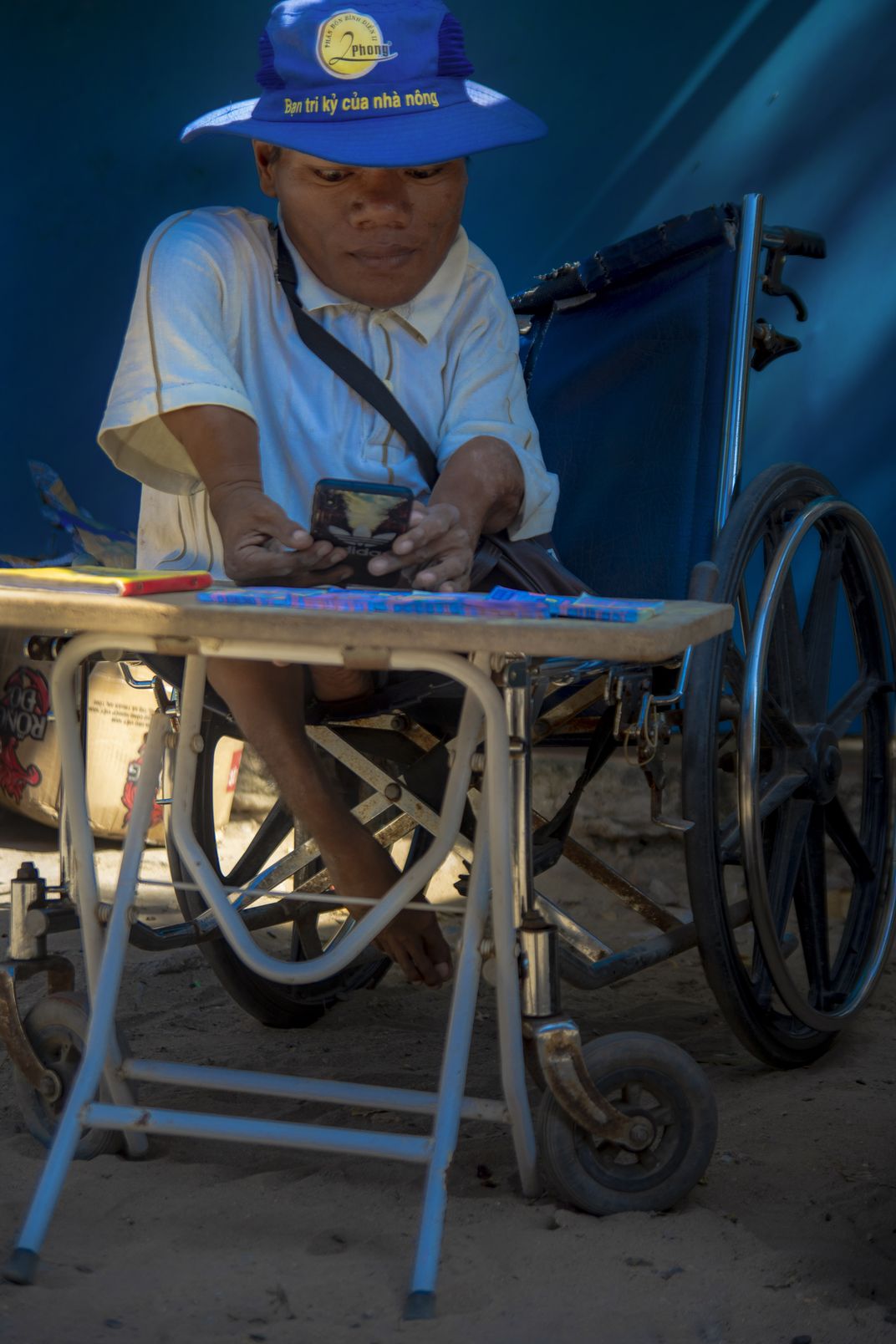 This man is disabled from birth but fate is not pessimistic. He taught himself to read and access the world through information technology and to make a living by selling lottery tickets. Life full of energy gave him confidence in life. This man is in Ninh Thuan near Nam Cuong sand hill